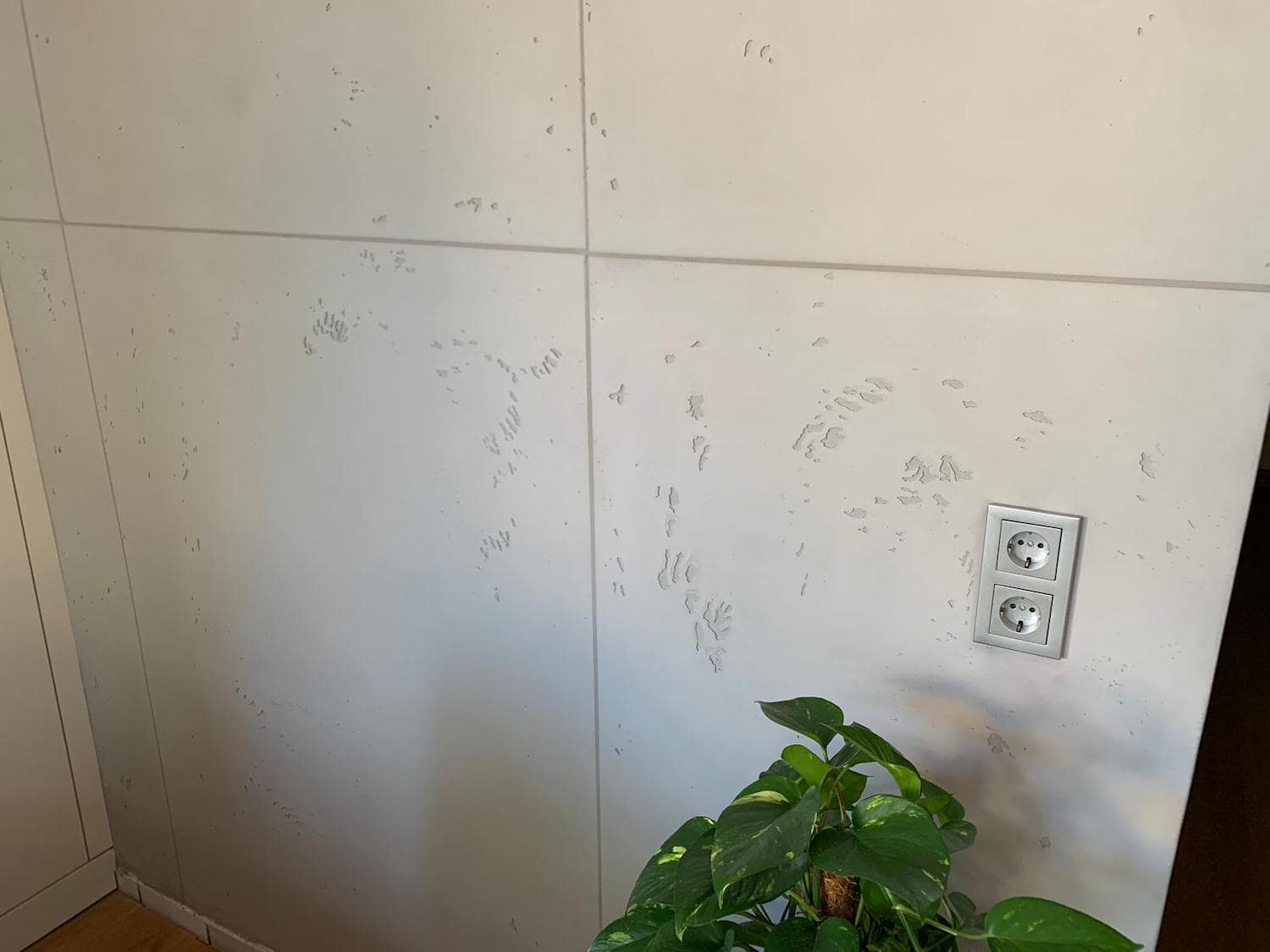 Mit einer Aufbauhöhe von nur ca. 2-3 mm ist es möglich eine authentische Sichtbetonoberfläche herzustellen. Authentisch nicht nur aufgrund der typischen plastischen Lunker (Lufteinschlüsse), sondern weil es tatsächlich zementär – eben echter Beton – ist. Die Glätte, der etwas unregelmäßige Glanzgrad und die scheinbar durch Schalungsbretter entstandenen Stöße tragen zu dem gewünschten Erscheinungsbild bei. Letztere entstehen durch die Kanten von zugeschnittenen Folien, welche für die Herstellung der Betonoptik erforderlich sind. Der jeweilige Zuschnitt ist individuell und wird auf die zu gestaltende Oberfläche zugeschnitten.