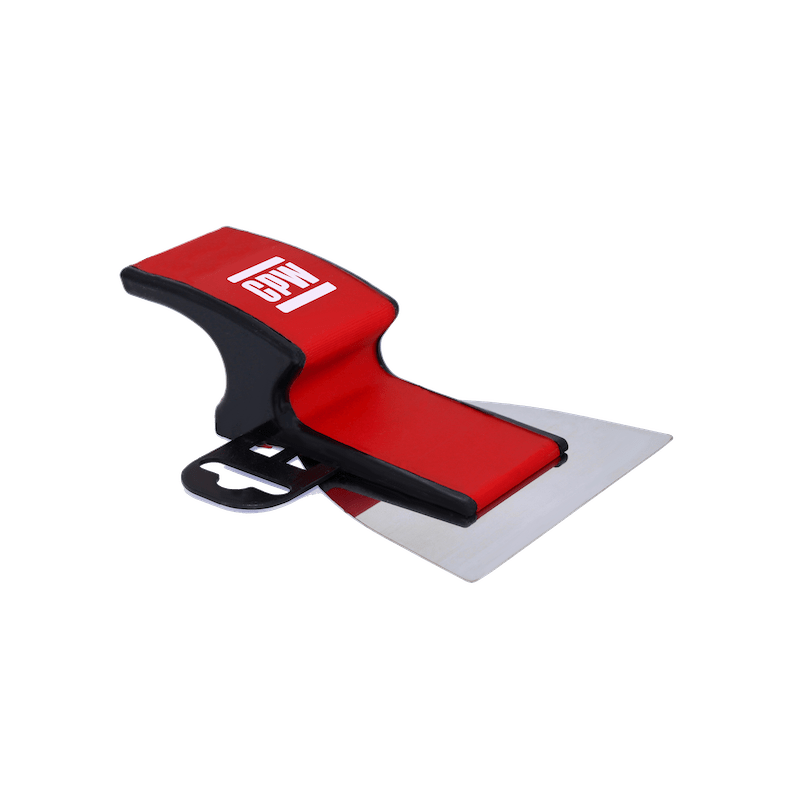Patentierte Bi-flex Verfahrenstechnik, sehr flexible Klinge aus gehärtetem rostfreiem Stahl (0,3 mm), tangentiale und abgerundete Klinge (beidseitig), große Kontaktfläche zwischen Blatt und Untergrund, so dass mit einem gemäßigten Anpressdruck eine Verdichtung und somit eine sehr ebene Oberfläche gelingt, ergonomischer und leichter Griff – ermöglicht einwandfreies Glätten auch auf größeren Flächen mit sehr wenig Materialverlust.